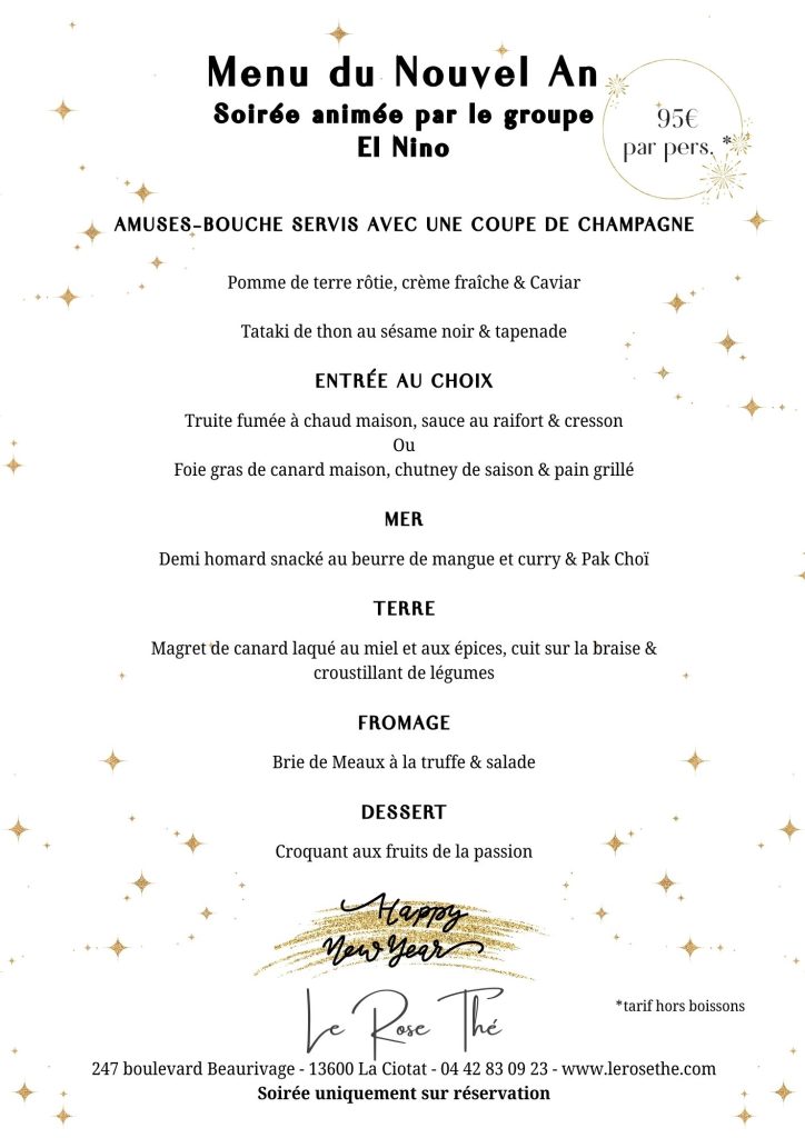 Contactez-nous pour plus d’informations et passez un Nouvel An mémorable au Rose Thé.